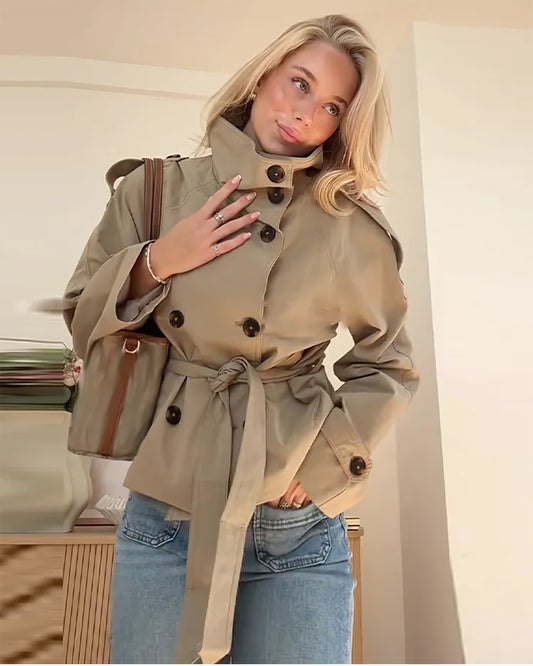 Double-Breasted Lace-Up Trench Jacket